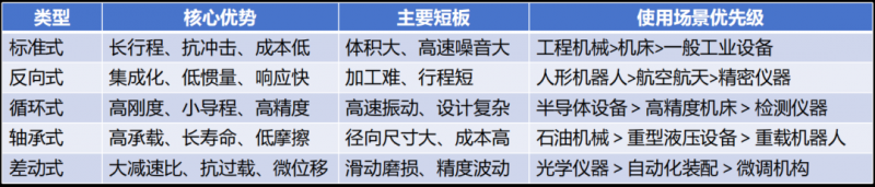經(jīng)過長期發(fā)展,行星滾柱絲杠已演化出多個結(jié)構(gòu)變體,在傳動效率、承載能力、尺寸適配等方面形成各具優(yōu)勢的類型。其中,通過對不同結(jié)構(gòu)形式的性能對比與工程適配性分析,目前在人形機器人領(lǐng)域得到廣泛采用的是“反向式”行星滾柱絲杠結(jié)構(gòu)。